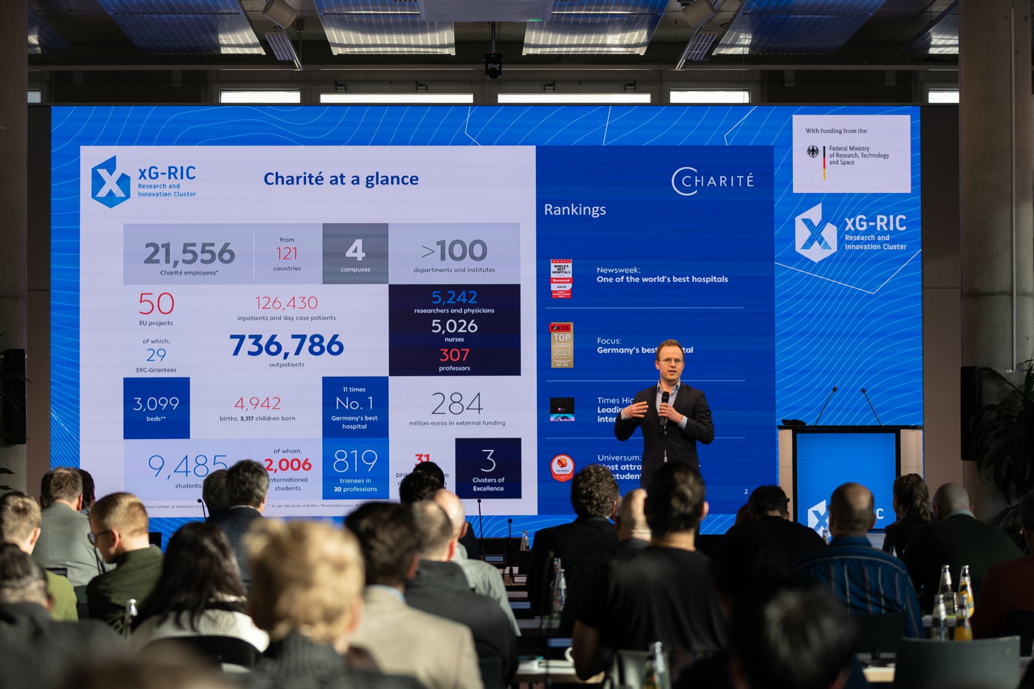 Following the welcome address and the introduction to the scope and objectives of xG‑RIC by its coordinator, Prof. Dr.-Ing. Slawomir Stanczak, partner presentations were delivered by the participating research institutions and organizations. These included Fraunhofer Heinrich Hertz Institute HHI, Fraunhofer IIS, Fraunhofer IAF, Technische Universität Berlin, Deutsches Zentrum für Luft-und Raumfahrt e.V., Deutsches Herzzentrum der Charité (DHZC), FAU Erlangen-Nürnberg, Technische Universität Braunschweig, and the Leibniz Institute for Innovative Microelectronics (IHP – Leibniz Institute for High Performance Microelectronics). The presentations highlighted each partner’s specific contributions to transferring key 6G technologies into relevant real-word applications.